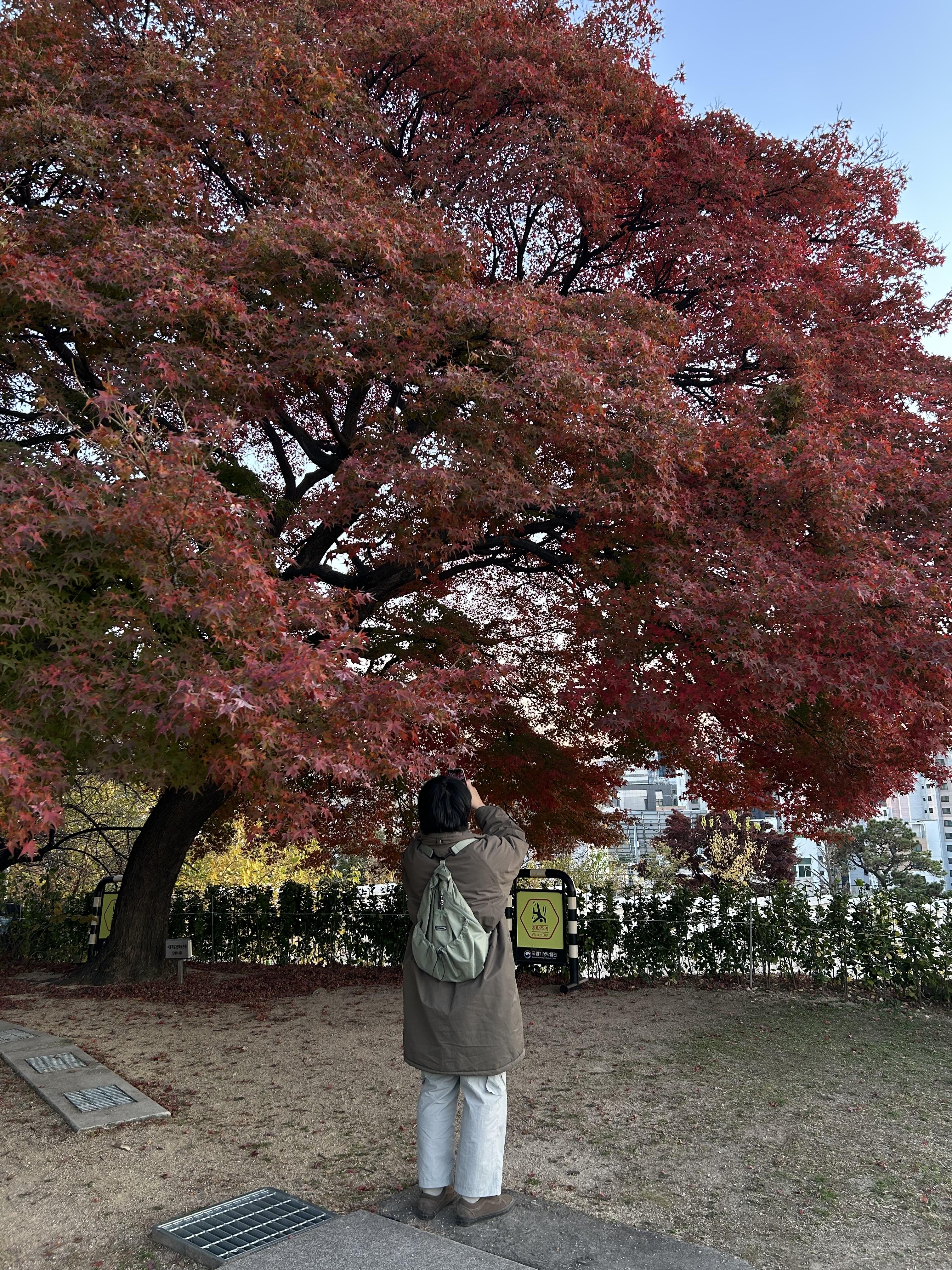 식물계절 관측표준목 단풍나무 앞에서 한참을 머물렀습니다. 한정원 시인의 말처럼 계절을 관측하는 것이 고목이라는 사실이 무턱대고 좋아서. 허술하지만 아름다운 어떤 기준에 따르면 지금 단풍은 절정이라고 말할 수 있겠습니다.